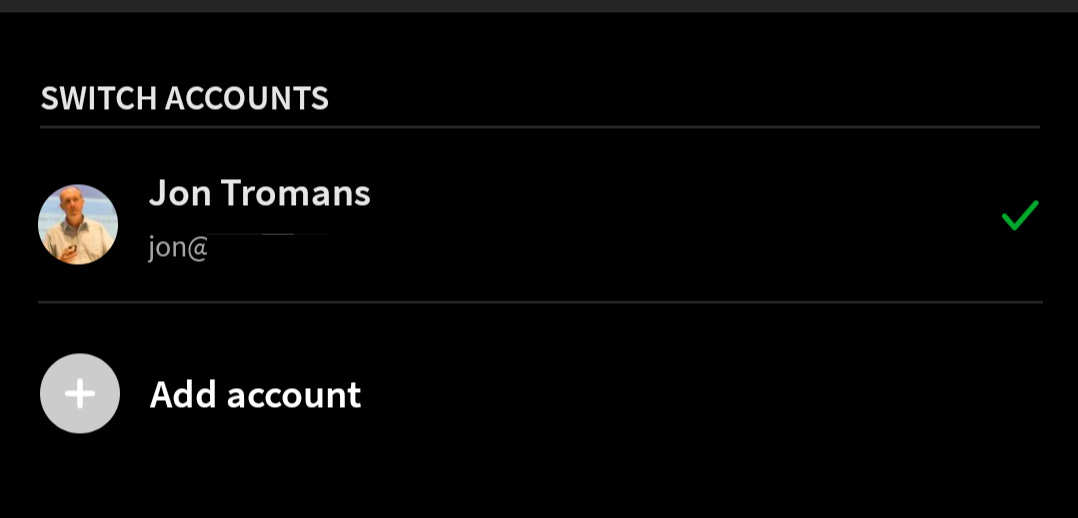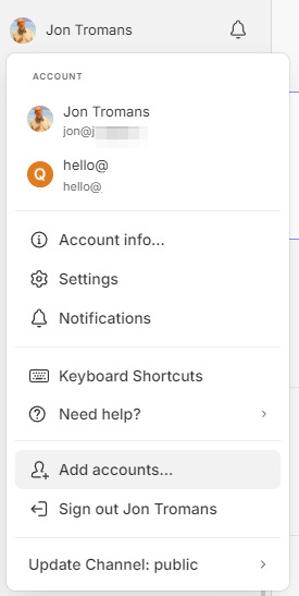Just click your avatar at the top left, then click the account name and you see this screen where you can switch accounts or add another one.