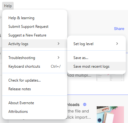 Head to the Help menu at the top of the app and navigate to Activity logs -> Save most recent logs.