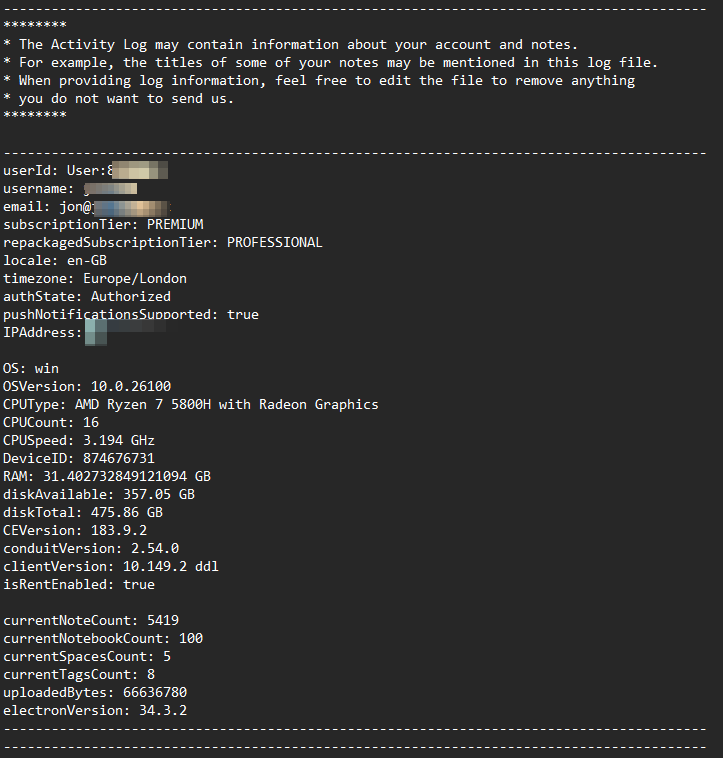 clientVersion is the version on Evernote being used and ddl means it’s the direct download from the Evernote website. If you use an app-store version ddl will be replaced with something else… someone let me know in the comments.