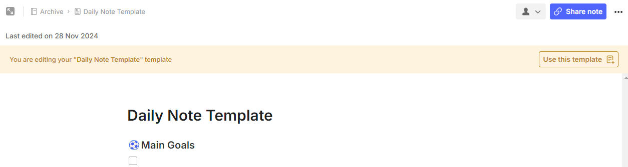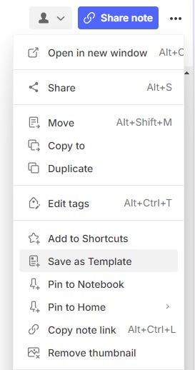 Then go to the three-dot menu at the top right of the note and select Save as Template.