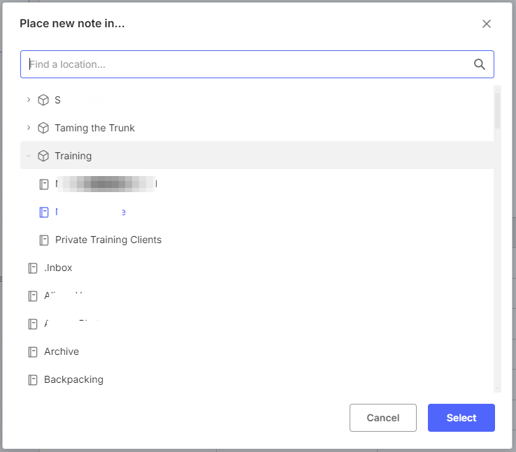 Click this and you get the notebook/spaces selector box appear and you can choose where to put your template.