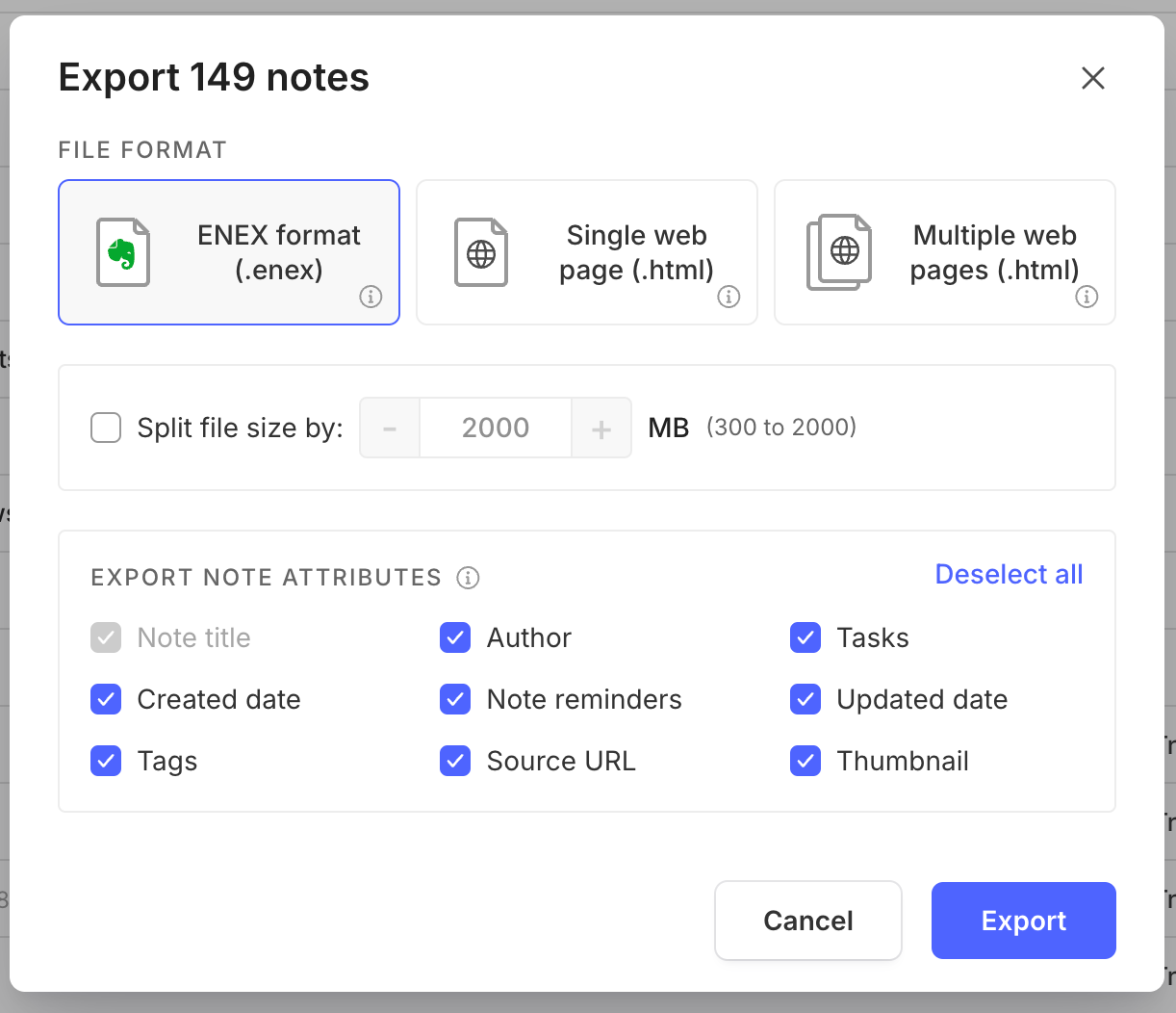 ENEX files contains all the information in the note so they should be fairly accurate.