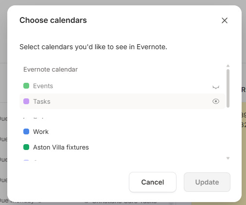 and then expand the Evernote calendar. You’ll be able to show/hide tasks.