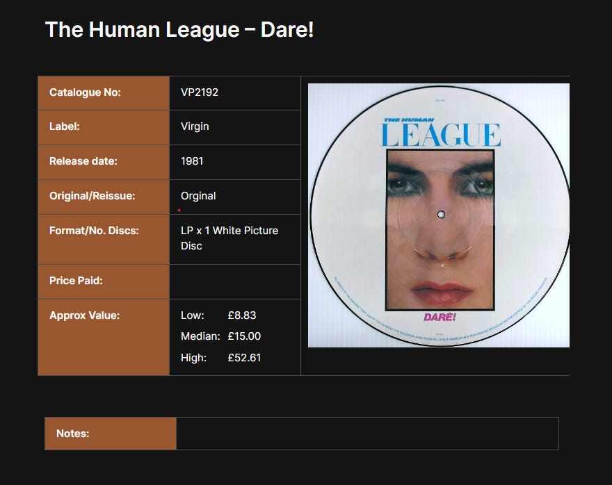 My “Music Collection” notebook is also set to “Offline” on my phone so If I’m at a record fair or have no signal I can still see what I’ve got.