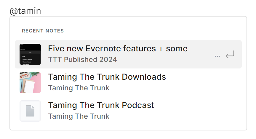 Evernote gives us a bunch of paragraph headers we can work with to split up our notes. We can also grab links to each of these headers using the chain icon on the far right when you hover over a header.