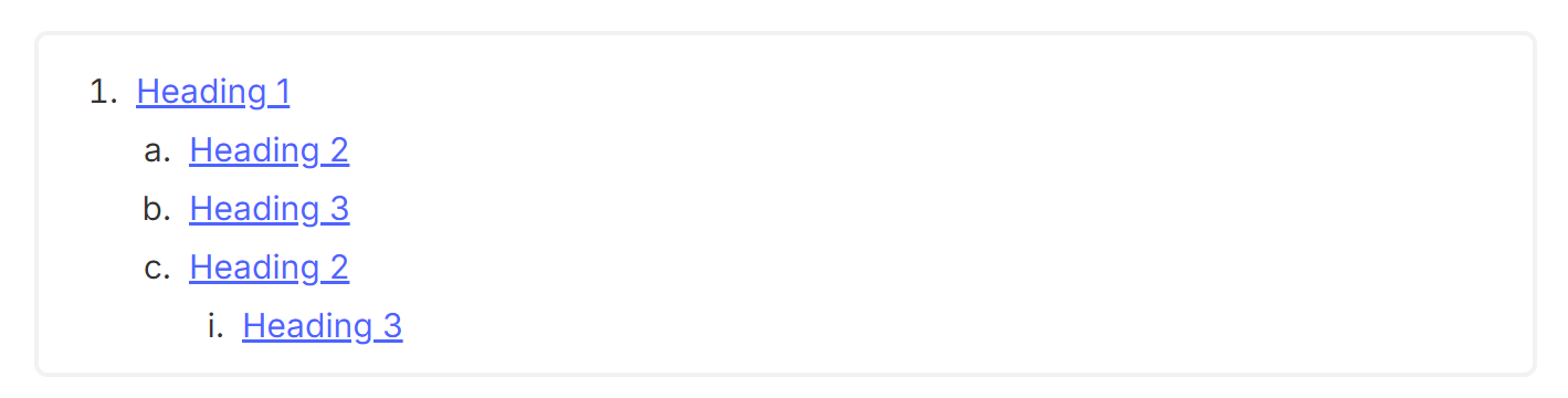 We can also generate a table of contents from these headers using a '/' command or the blue insert button in the editor top toolbar.