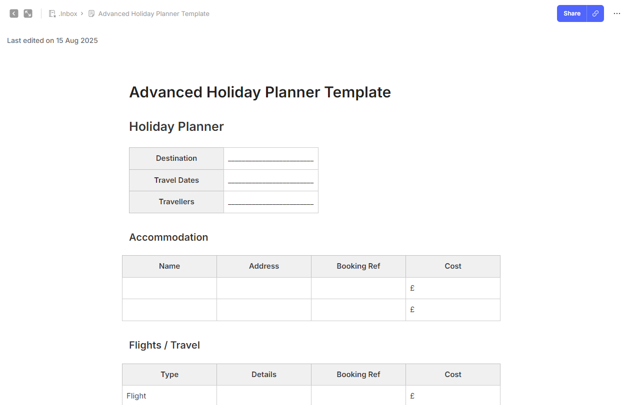 Can you create something a bit more advanced, maybe using tables and better layout. Let me download as an ENEX file