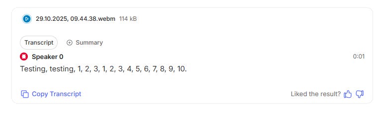 Hit stop on the recorder when you’re done and you then get the chance to transcribe and summarise the recording.