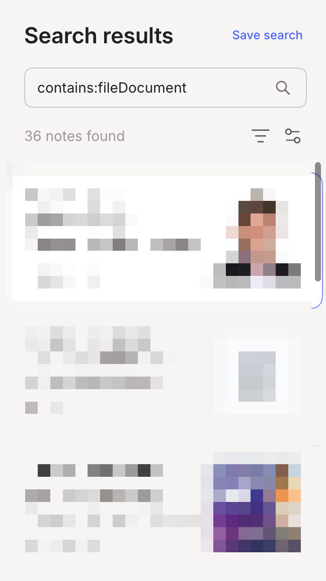 This advanced search looks for all my notes with Word documents. I searched for ‘contains:fileDocument’.