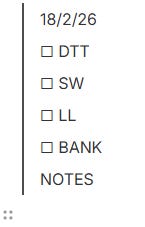 I have some big tick boxes that refer to client work I have to do that day. Just the main tasks. All my regular recurring tasks are still in Evernote.