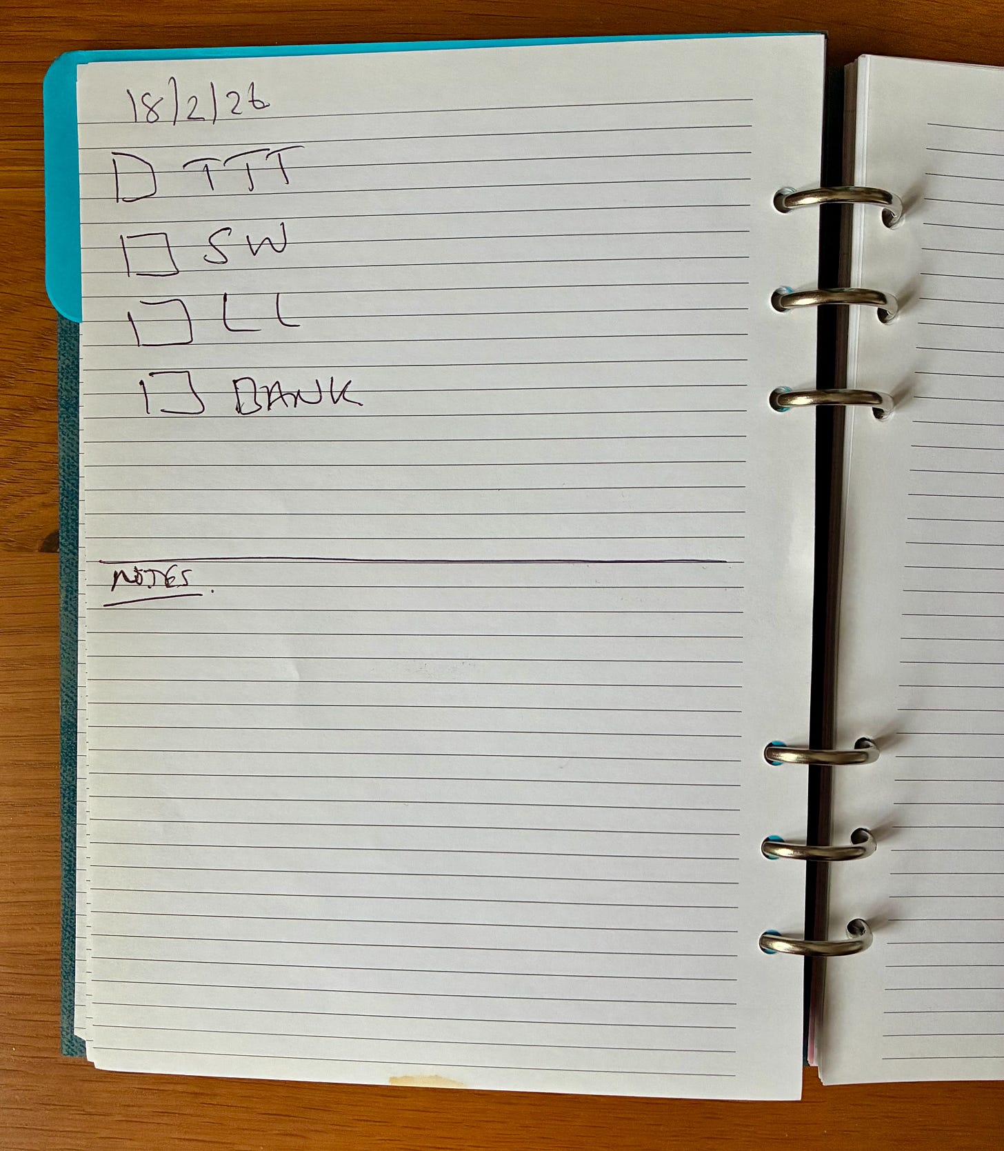 An example of this is during the training sessions I run. I take notes on paper because my screen is running a presentation. I could use my phone for notes but maybe I’m a little old fashioned, it seems rude to be starring at a screen typing when other folk are talking to me and those folk have paid me for the training session.