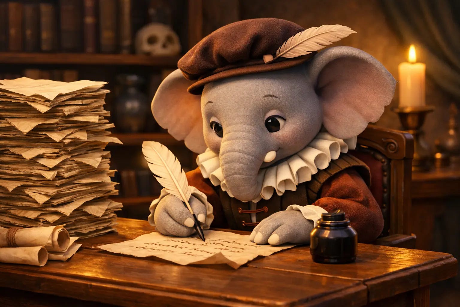 I just want to say how much I love your illustrations. Today's Shakespearean elephant is the best ever!!