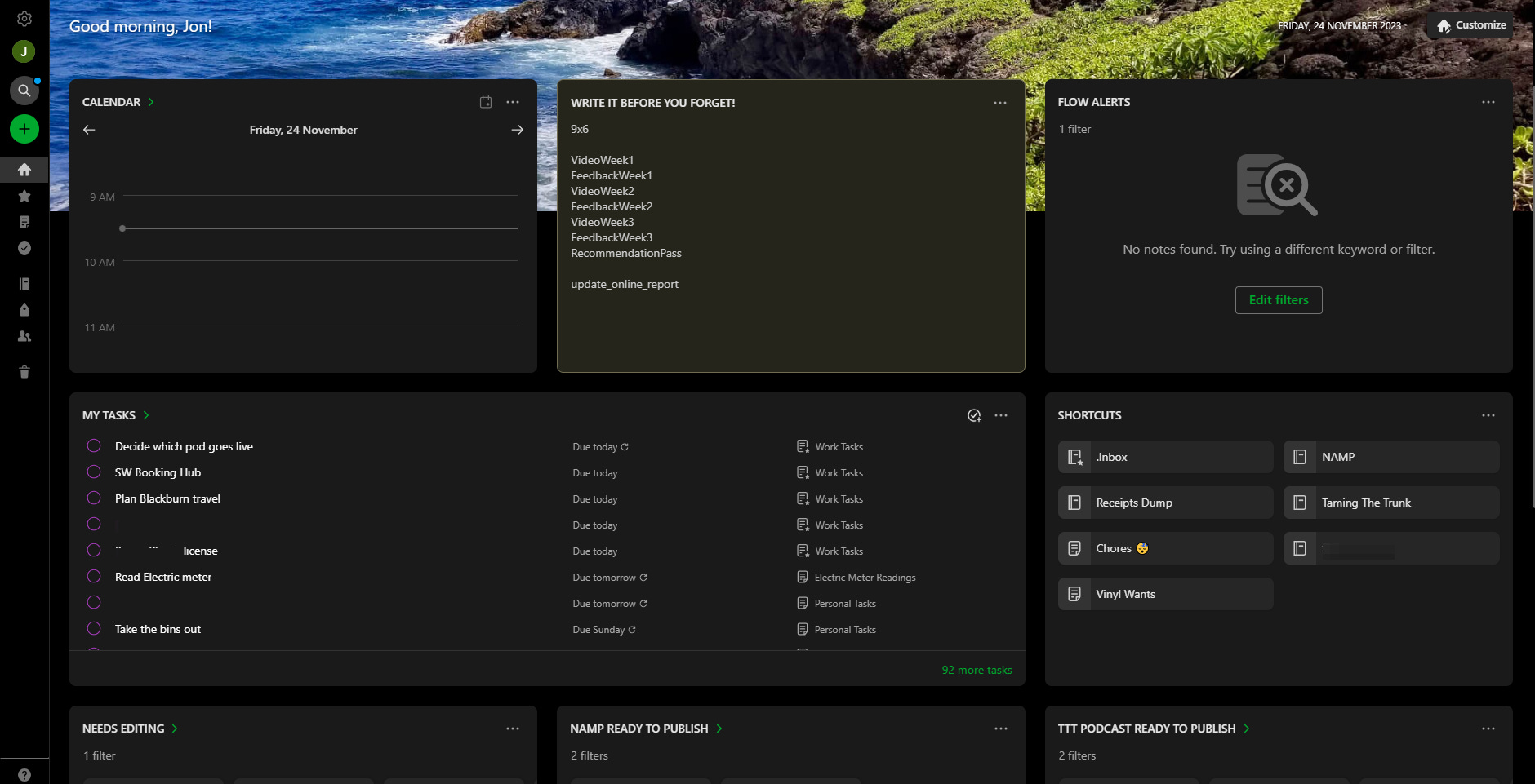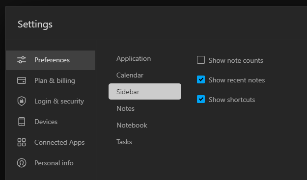 If you head into settings you can also add note counts, show recent notes or choose to show/hide shortcuts.