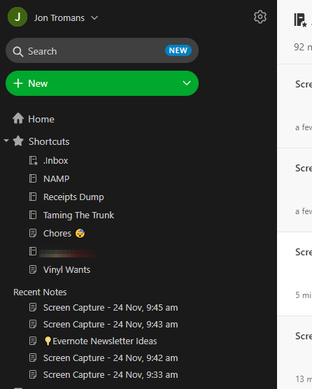 Dark mode is available on desktop, mobile and the web. All the screen grabs this week are from the web version of Evernote.