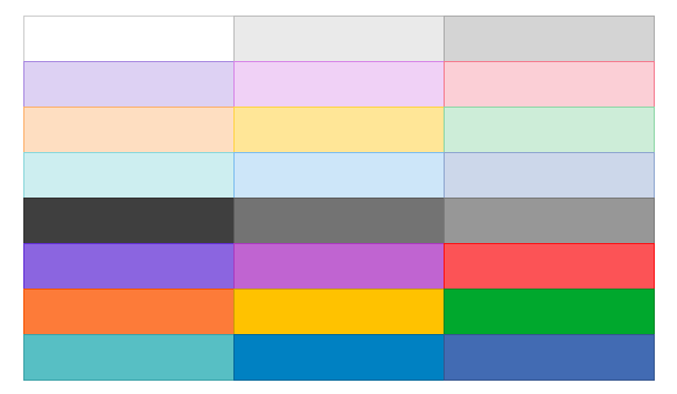 I’ve picked all the background colours available in a table so we can see what they look like in both modes.