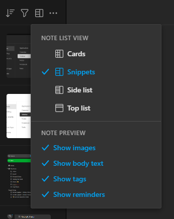 When it comes to viewing your notes in the sidebar we have a few display choices including Cards, Snippets, Side Lists and Top Lists.