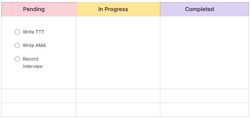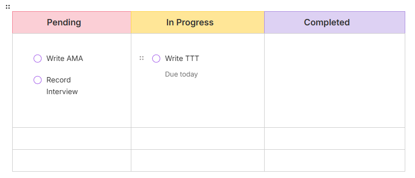 What’s great about a Kanban board is that you can move your tasks from one column to another based on what stage that task is at.