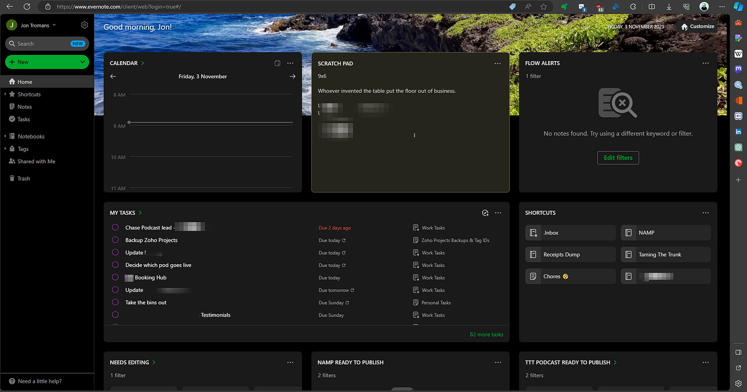 I’ve not used Evernote web for quite a while. The desktop and mobile apps work well for me and if I’m honest the web version always seemed a little slow. It could take over a minute to load up for me and my notes.
