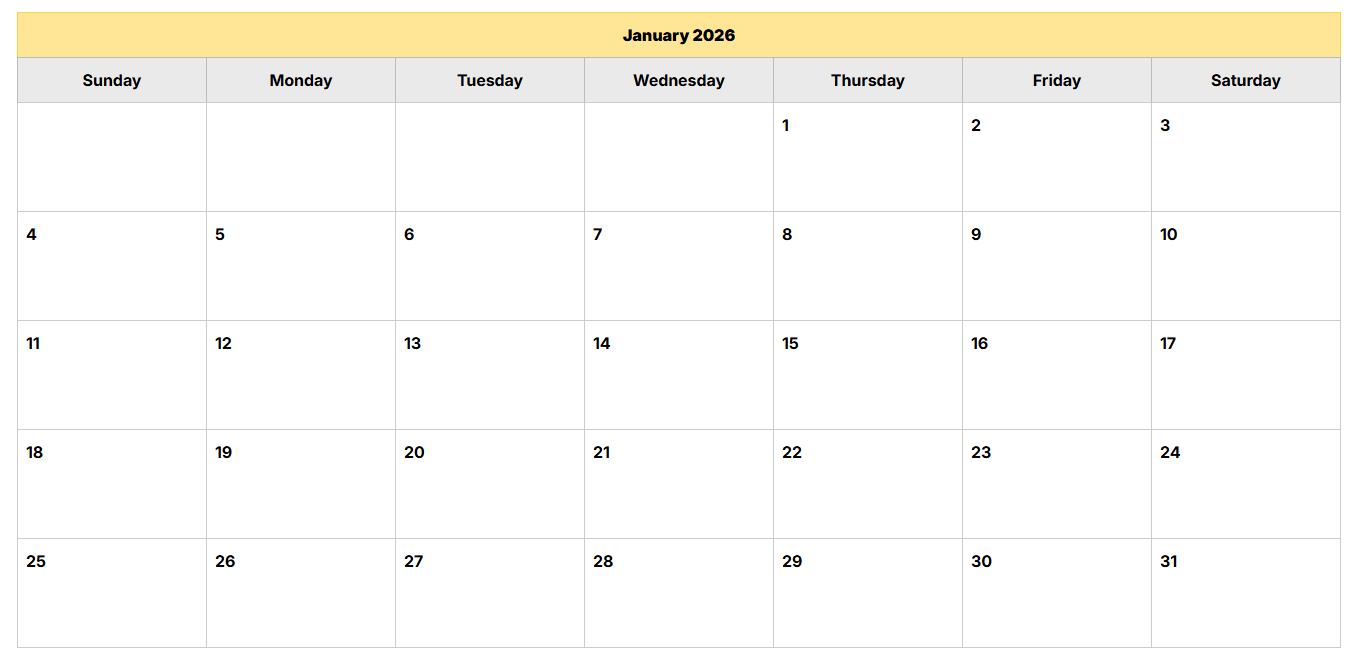 One with the week starting on a Monday and another where the week starts on a Sunday.
