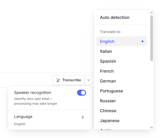 You can set the default transcription language in the dropdown menu of the Transcribe button.