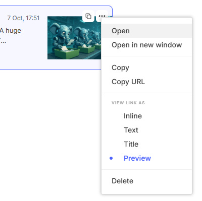 When you hover over the new link preview, there’s a copy link icon and the dropdown for all the usual functionality.