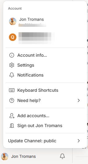 Fourth on the list. In the desktop apps the account area with your little avatar is now at the bottom left of the app. Its moved from the top.