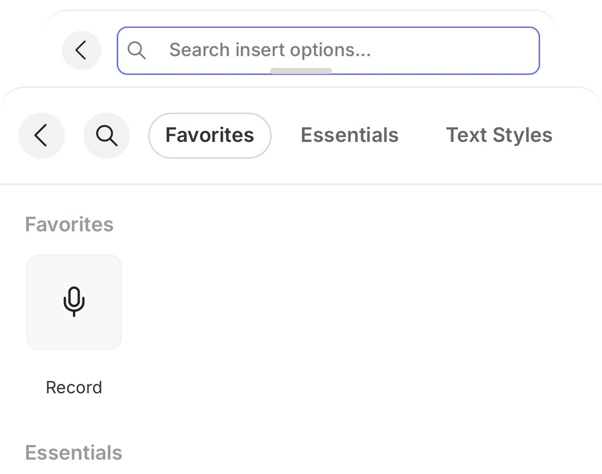 First thing to tell you about is a new, much easier to use insert menu for iPhone and Android.