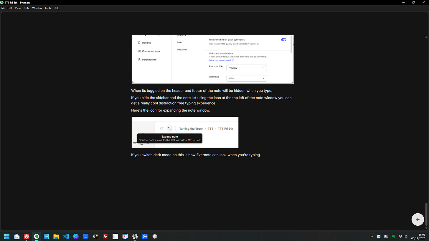 If you switch dark mode on this is how Evernote can look when you’re typing.