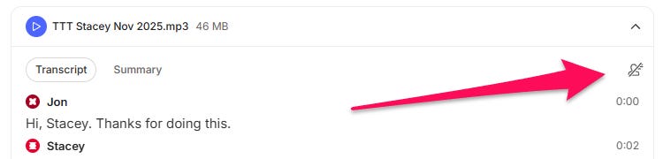 The variation of this icon is a person without a strikethrough and this will regenerate the transcription with the speaker.