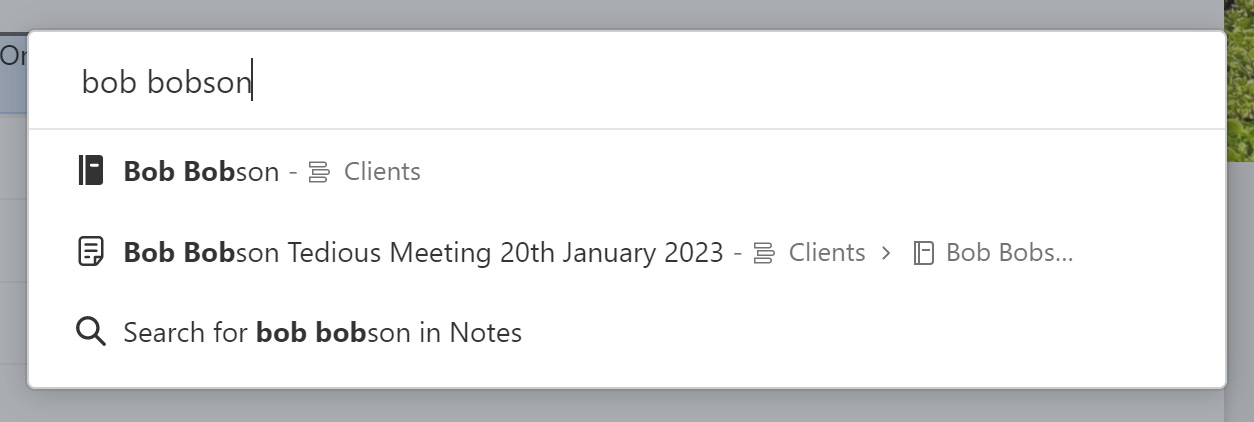 This isn’t a replacement for Evernote search but I assume(?) that the majority of folks searches are very simple, just looking for a note or a notebook. ‘Switch to’ works fine for this type of action.