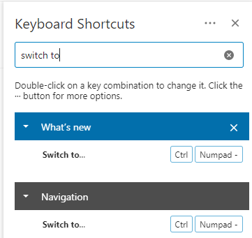 Changing the keyboard shortcut