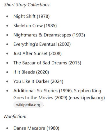 Take a look at the Stephen King books in the note and then search the web to find any Stephen King books that are missing from the list.