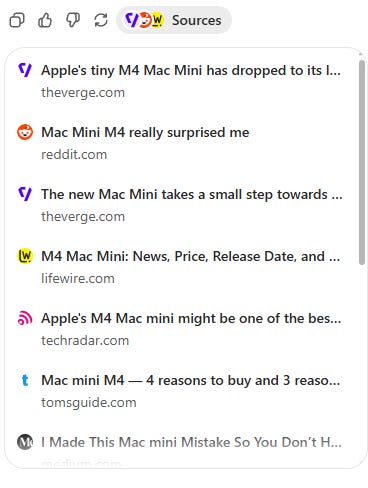 At the bottom of the reply the assistant gave me all the sources it looked at and a copy button for the info.
