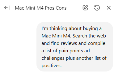 One key prompt I used was to ask the assistant to search the web for reviews and compile them into a list so I could add them to a note.